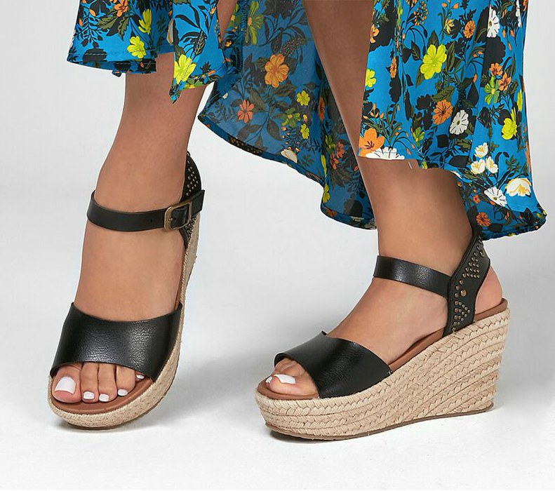 Skechers Dam Svarta Kilar Sandaler - Brit - Edgy Days - Sverige (IJEWG-8143)