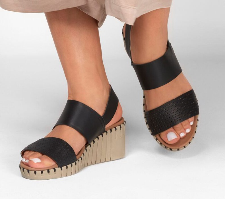 Skechers Dam Svarta Kilar Sandaler - Pier Ave - Beach Chick - Sverige (RTGVH-5473)