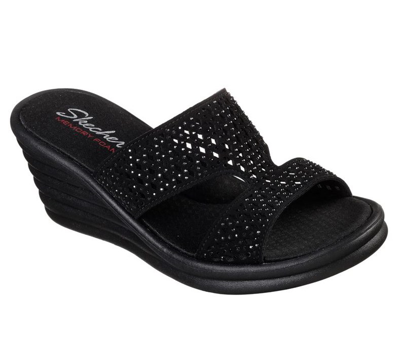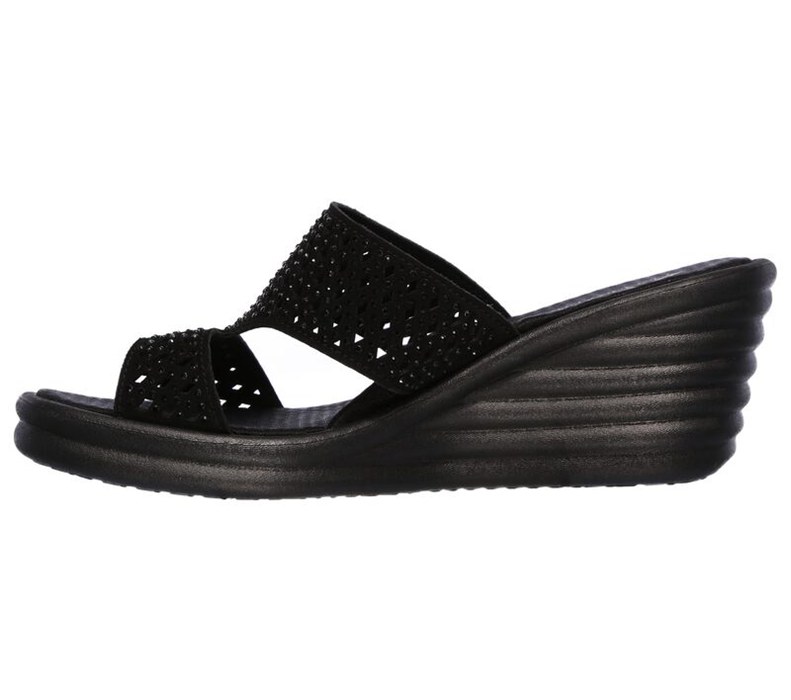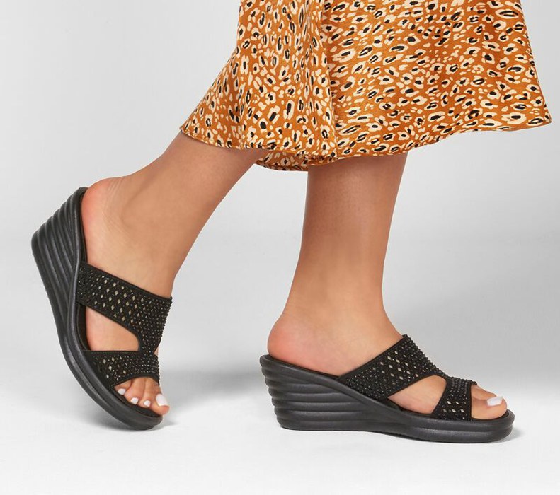 Skechers Dam Svarta Kilar Sandaler - Rumblers Wave - Ibiza Sommar - Sverige (ZQFPB-2369)