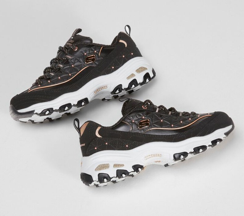 Skechers Dam Svarta/Rosa Guld Sneakers - D'lites - Glamour Feels - Sverige (PMJHW-7903)