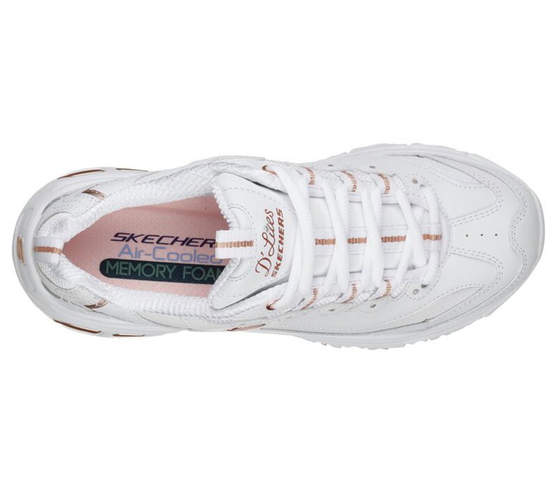 Skechers Dam Vita/Rosa Guld Sneakers - D'lites - Fresh Start - Sverige (AGBJX-7590)
